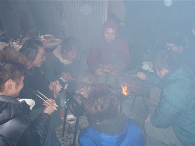 準備風景。ガレージで開催!このミスマッチがGOO。