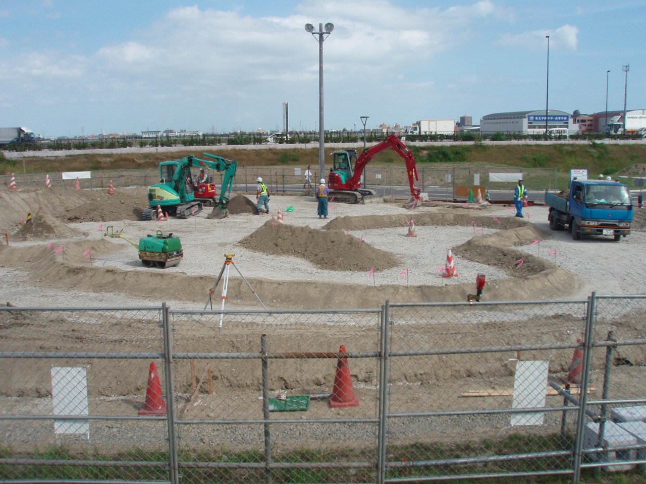 で、今の工事状況。基礎の基礎でしょうか。うっすら山が盛ってあるのがボールに
