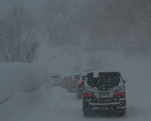 タイヤ交換したと思ったらこれだもの。いっつもそう、タイヤ交換すれば次の日に雪降るし、WAXかけりゃ土砂降りだし、新しいギャグ考えれば同僚のちっさいのにパクられるし。いっつもそう。