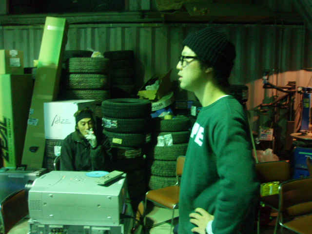 準備風景。ガレージで開催!このミスマッチがGOO。