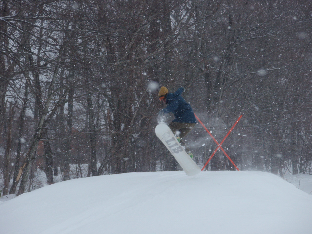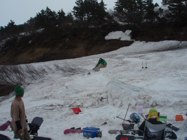 この三人で行くと俺の心肺機能駄目になる。栄養不足からか、4時間の滑走で俺は終了。14時以降までは晴れ間と吹雪の繰り返しな一日で、あっという間に数センチの積雪になったり、まぶしいくらいの天気になったりまさに女の子のような天気。烏帽子のキッカーがあんなに調子良いってことに驚きました。あれならジャングルなんかより面白いかも。ちゃんと整備も入ってたし。上の画像は封鎖されたたポコジャン使って遊んだりなんだり、ラジバンダリ。そこで大先輩の俺が撮影してても、『撮影変わるすか??』って言ってこないお前ら後輩可愛すぎ。もはやラブ。