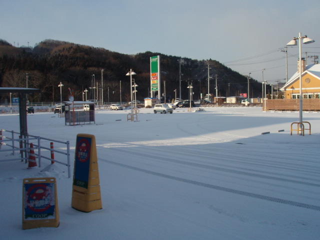 愛子のCOOPで待ち合わせ。すでに3センチほどの積雪。