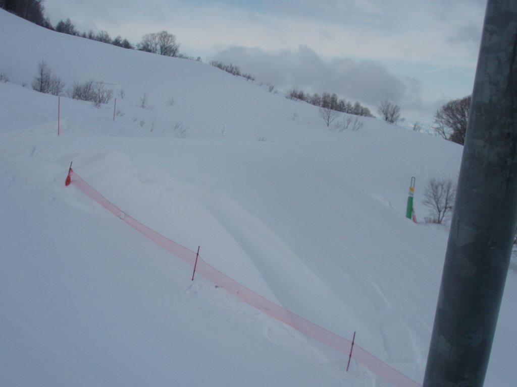 勿論ゲレンデはと言うと、ペアのみの運行風速は15mほど、リフトが揺れる揺れる。結局一本だけしか滑らなかったが、風で新雪も飛ばされ、ハードパックの箇所が多数。まあそれもまたいきなりガリるから楽しかったけどね。