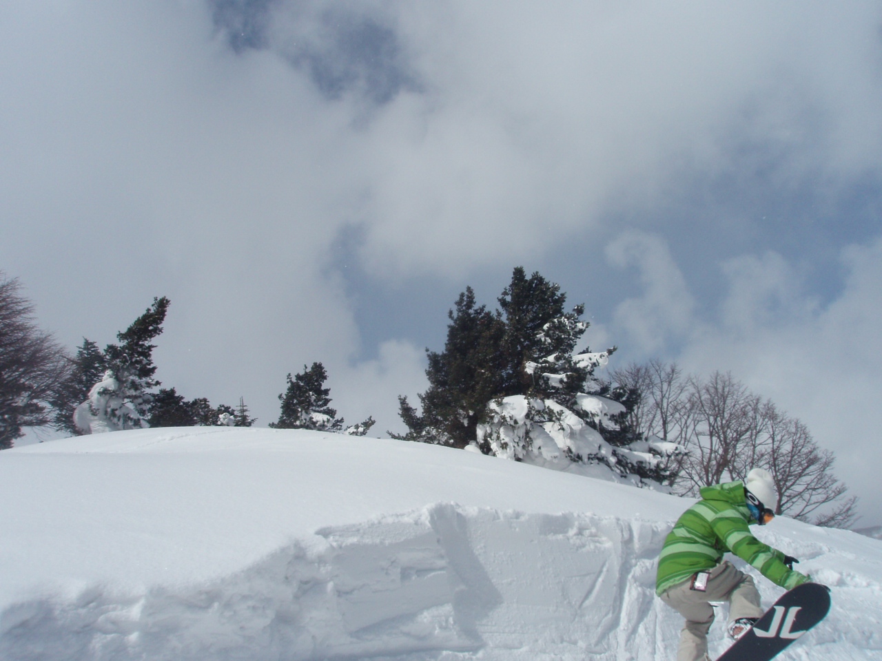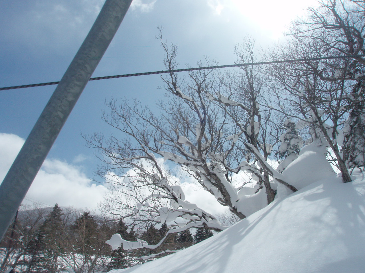 天気は午前中はこんな感じ。無風のピーカンでした。午後から雪がババット降ってきたけど、たまに覗く晴れ間にテンションが上がります。
