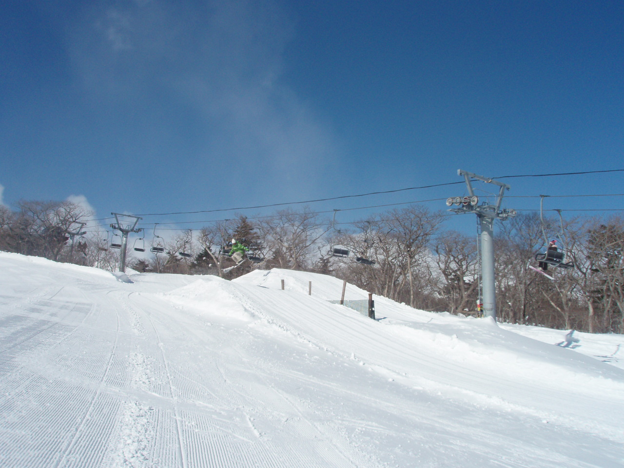 ゲレンデはコーデュロイ。ひっさびさに気持ちの良い圧雪でした。