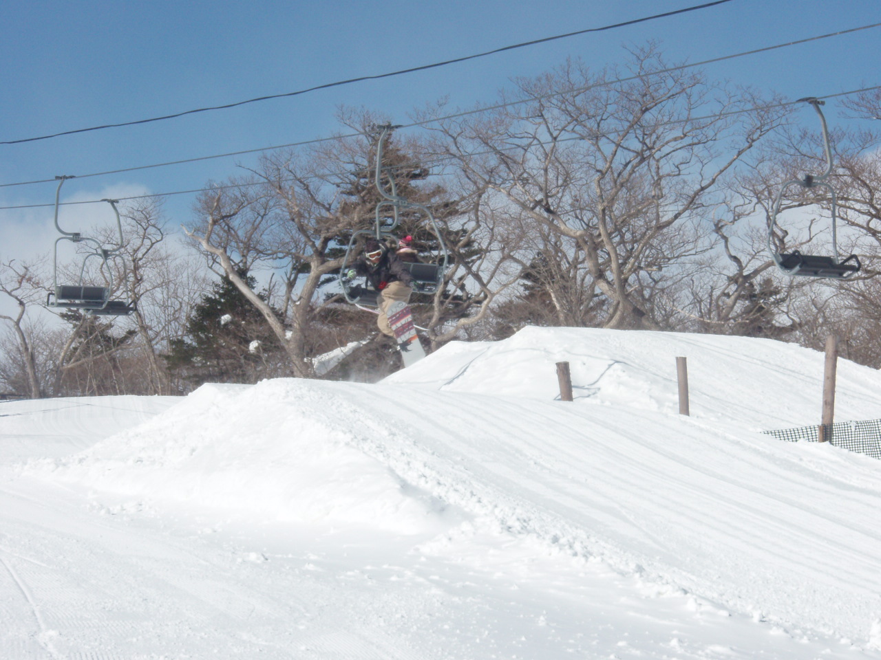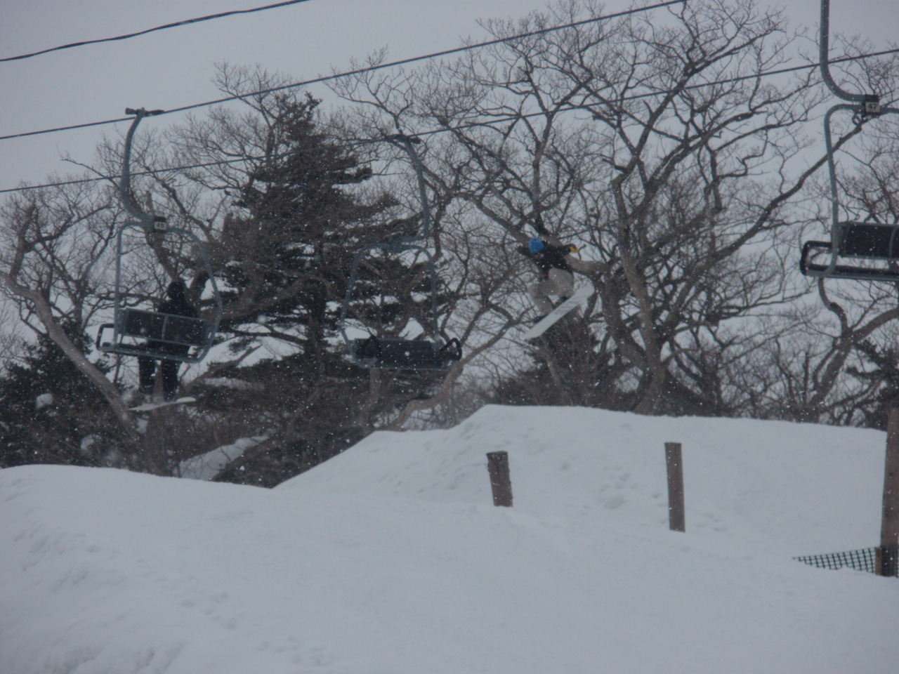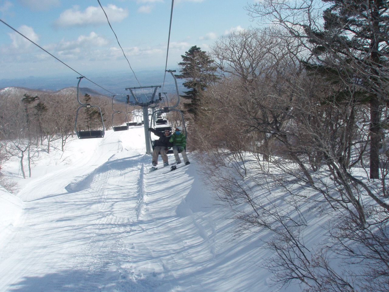 ゲレンデはというと予想通りの爆パウ&爆風。リフトはペアのみだわ、