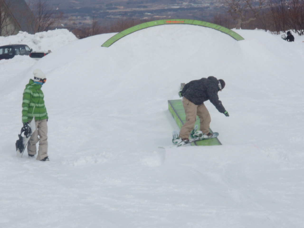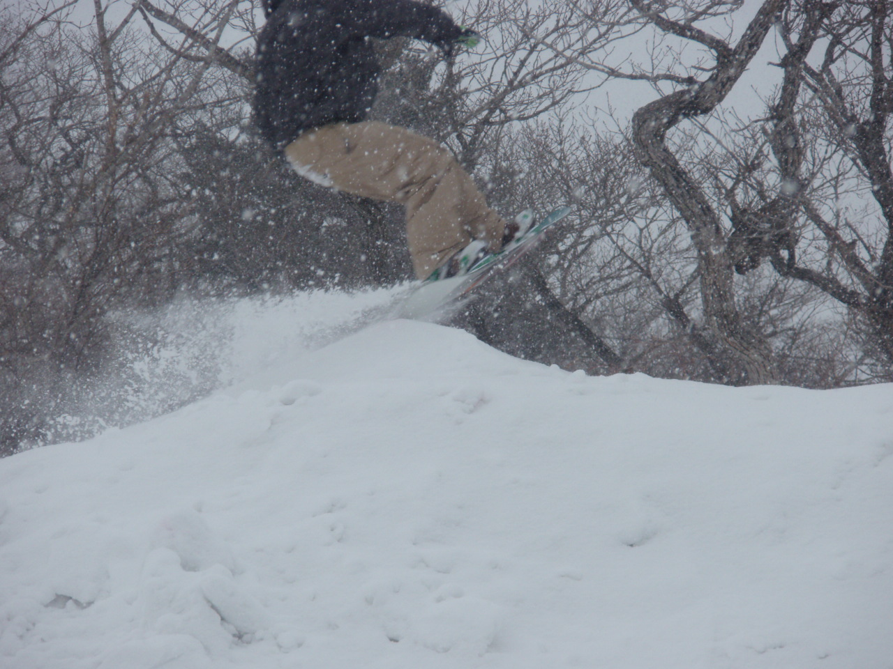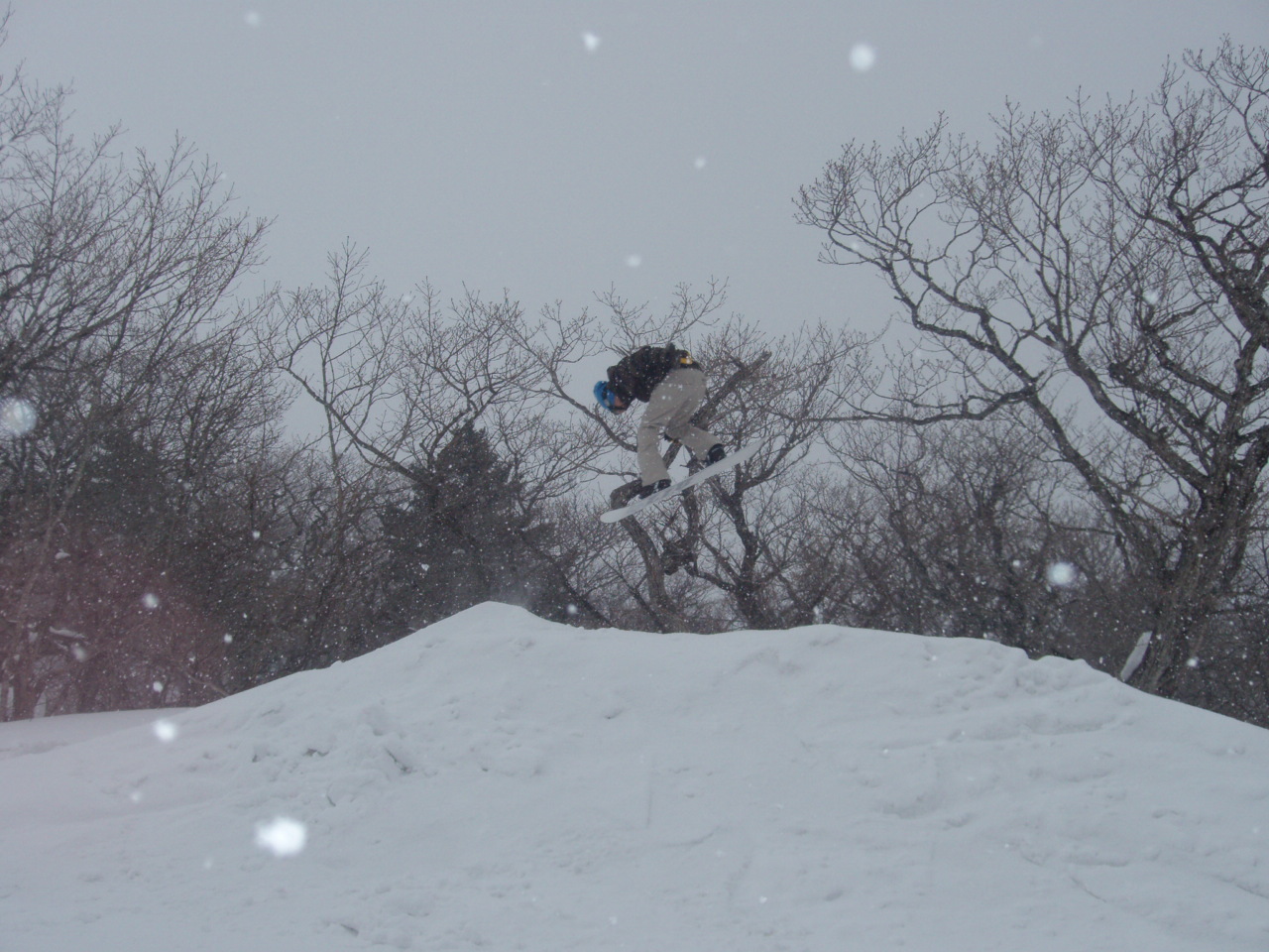 パークは積雪多すぎでクローズだわ散々でした。でも午前中は比較的滑れたので、そこが俺らの底力、遊べるとこ探しに探して、それなりの満足感でした。ネット越えのパウ着、サイコーです。