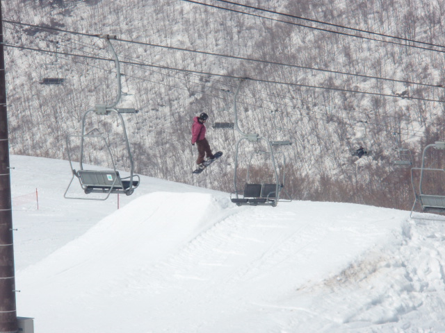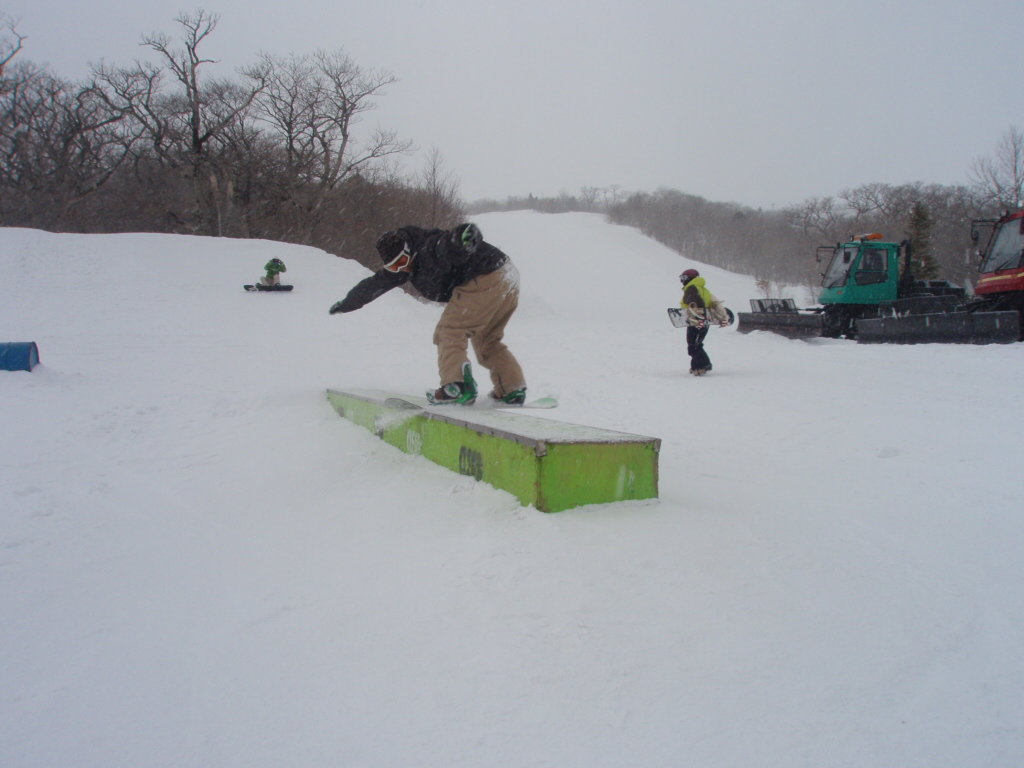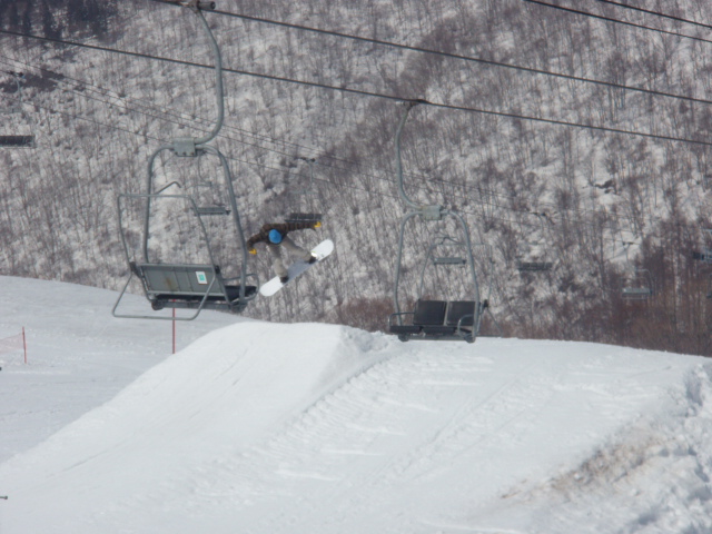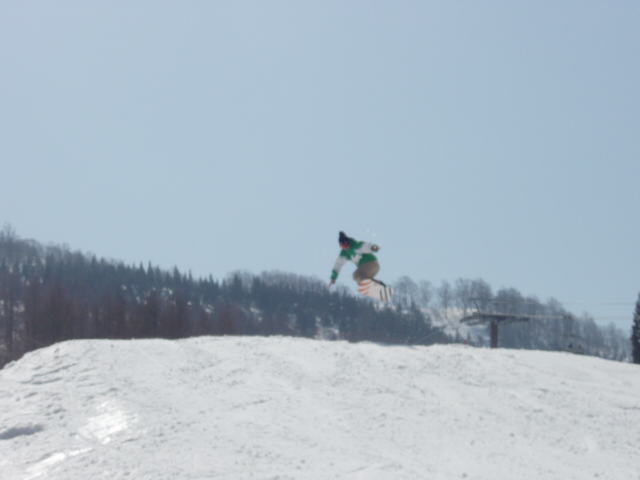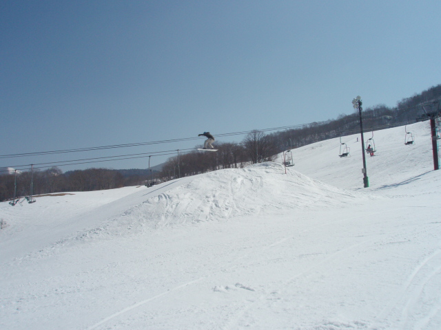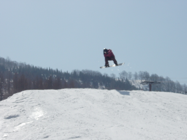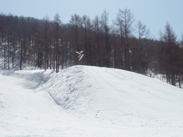 文章書くのめんどくせ。とにかくスミカワはホントキッカーの質がいい。スッゲー飛びやすくて、他のゲレンデのキッカーではやらないこと出来ないことがスパスパ決まる。膝の調子もすこぶるいい感じ。F/SもB/Sも360°までやっても苦痛ではなくなりました。きてるよ俺。アントキの猪木ばりに今来てるよ。都会派ゲレンデではないけど、スミカワに来ると新鮮な気持ちになります。練習してしまうな、スミカワは。後はメンツ、やっぱテンション上がるは。ベニマルさん。